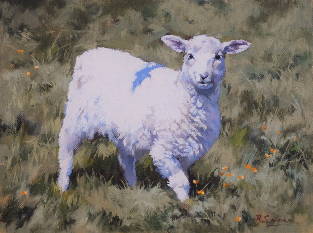 The rule is, if it’s an outdoor painting day, there will be a solid grey sky like a sheet of Damoclean lead. All life and colour will be drained from the landscape. Any cows or sheep breaking the monotony will shuffle around to show only their backsides as if the artist is a wandering bum-magnet. Sometimes it seems as if the fields and hills are doing this as well. Any interesting wildlife will be asleep in a hole in the ground or flying away from you in the distance.